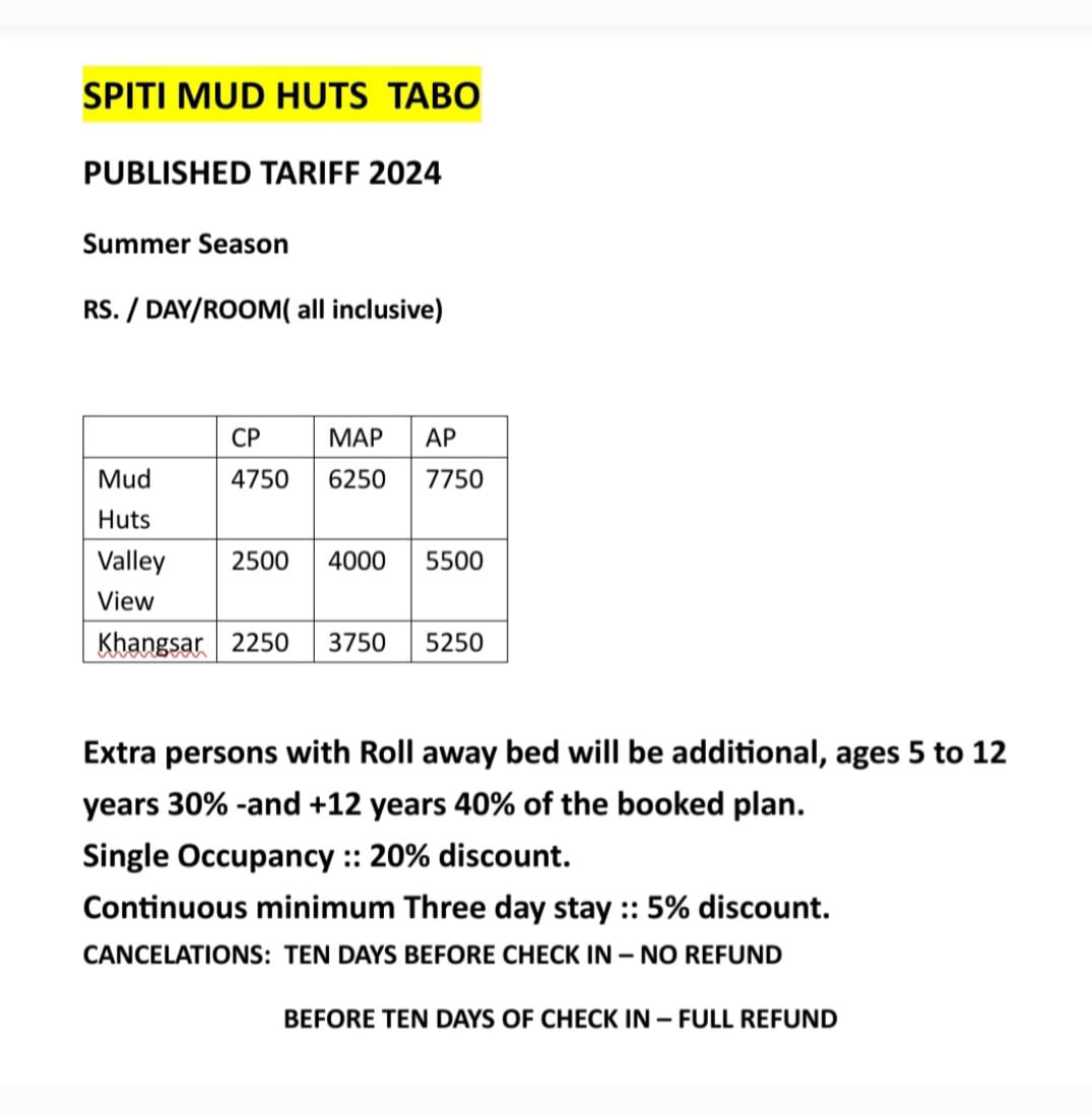 - Tabo being at the lowest altitude in Spiti Valley with lots of greenery from Apple orchards, is the ideal acclimatisation gateway.