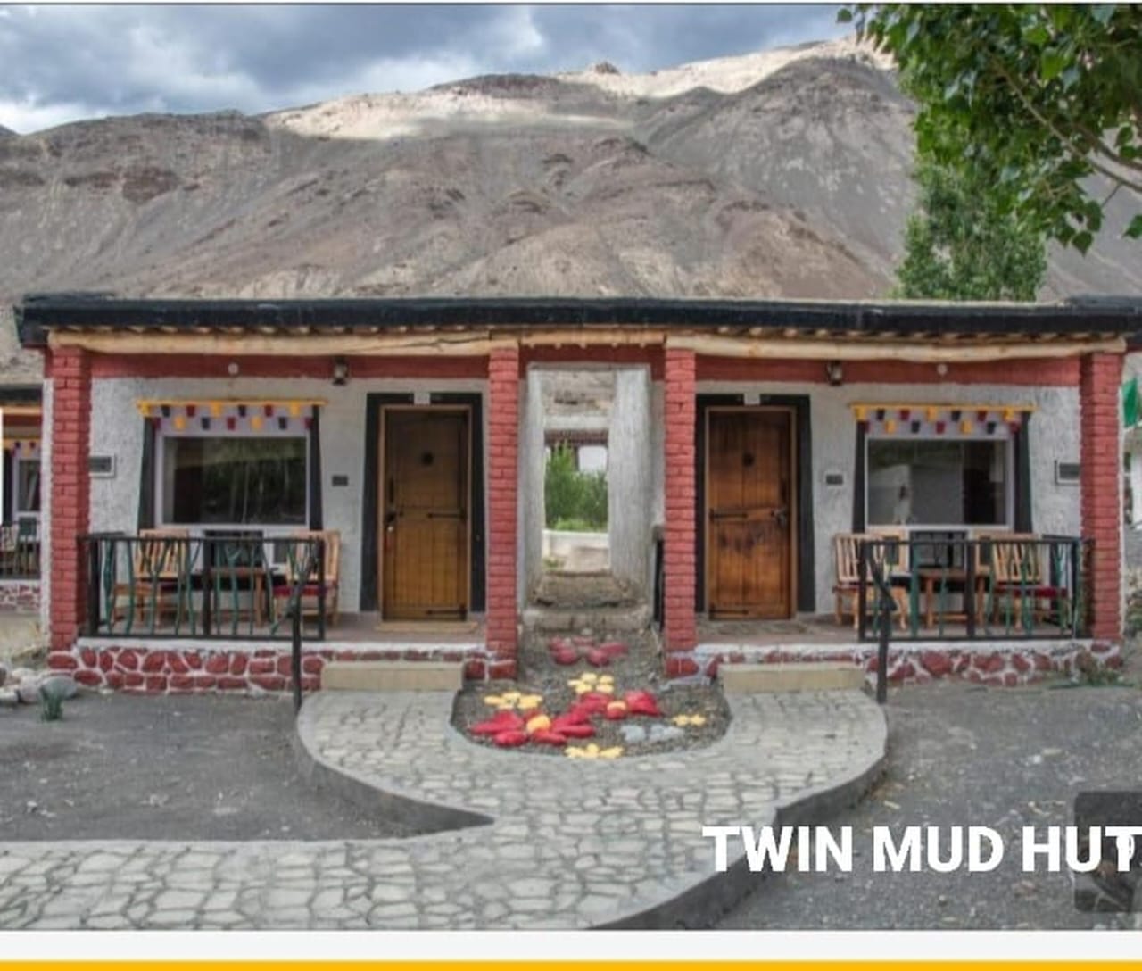 Mud huts were built in theĀ largeĀ forepart area of the very first hotel in Tabo, located adjuscent to the holy Tabo Monastery complex.
